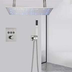 5 Function Ceiling Mount LED Large Recessed Rain Shower Head Enjoys new luxury shower head and give a new look and feel to your shower room and bathroom. Get fresh body massage and feel relax with 5 different function while you will take shower. Luxury Shower Head Feature: Cold/Hot Water...