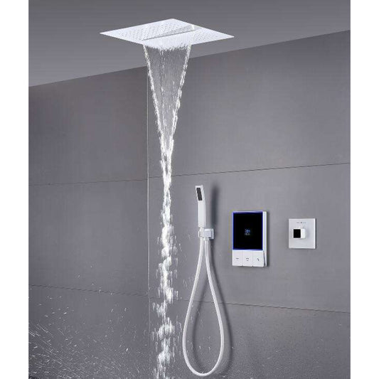 Juno Wall-Mounted Concealed Smart Thermostatic Shower System with Hot/Cold Waterfall Ceiling Rainfall Shower Head Elevate your shower experience with the Juno Wall-Mounted Concealed Smart Thermostatic Shower System. Featuring a luxurious hot/cold waterfall ceiling rainfall shower head, it offers a soothing and refreshing experience every time. The smart thermostatic controls ensure...