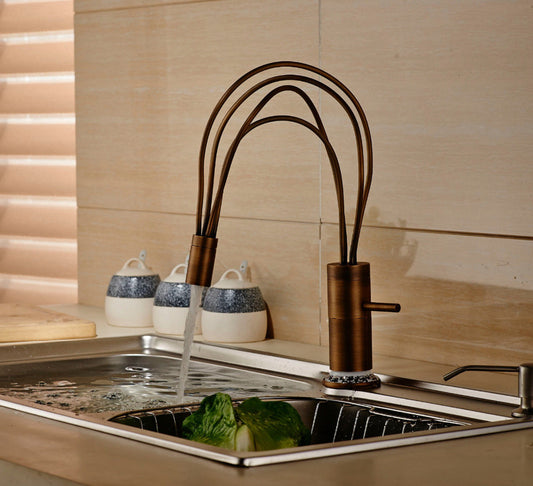 Montreuil Antique Brass Creative Swivel Spout Kitchen Sink Faucet Single Lever Mixer Tap hot and cold water Product description Function: Kitchen Sink Faucet Feature:Swivel Spout Finish: Antique Brass Number of Handles: Single Handle Installation Holes: One Hole Overall Height:340mm(13.3") Spout Height:150mm(6") Spout Reach:170mm(6.69") Valve Type: Ceramic Valve Faucet Body Material: Brass Faucet Handle Material:Brass With...