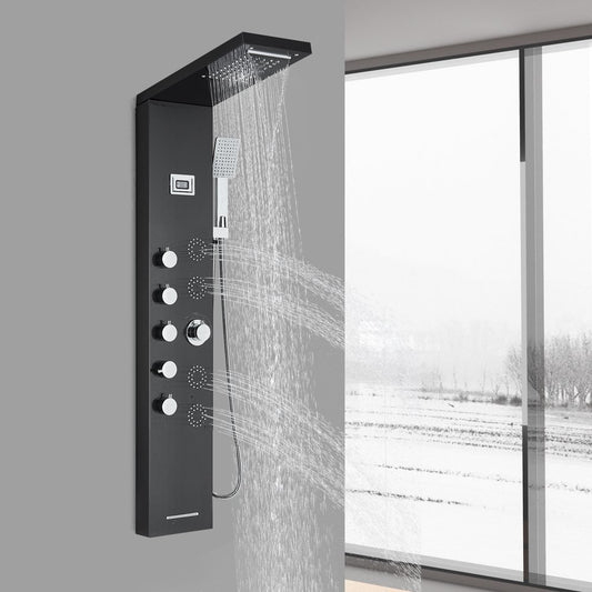 Black shower panels are available in different price ranges depending on its features. A simple shower panel with all the basic features would cost as low as $500. For more sophisticated ones with LED lights, temperature displays, and shower timers, the cost would go as high as $1000.