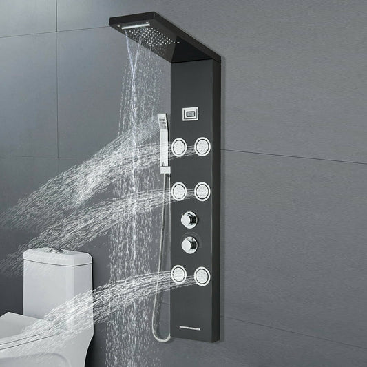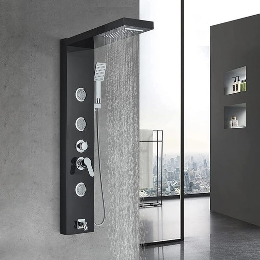Provide a stunning and versatile look to your bathroom with black shower panels. These panels take your shower décor to an entirely new level. At the same time, the functionality of the bathroom is not affected.