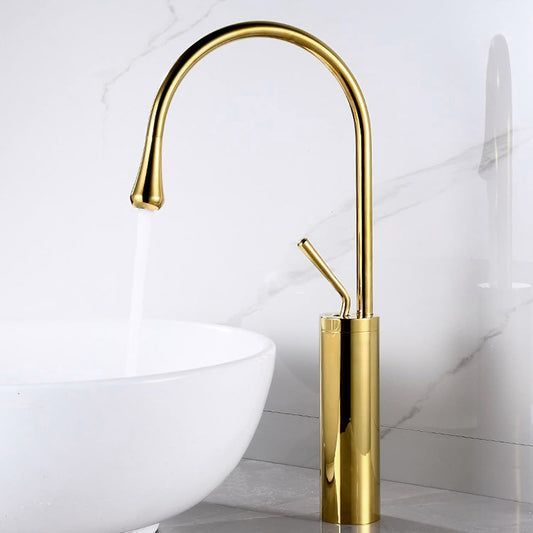 Type: Bathroom Sink FaucetStyle: ModernMaterial: BrassFinish: GoldHot and Cold Water: YesCartridge: CeramicHandle Material: Zinc Alloy