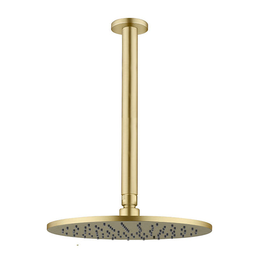 Juno Large Gold LED Rain Shower Head with and without led lights Showerhead Length 31" Showerhead Width 31" Material Stainless Steel Finish Gold Plated Showerhead Style Contemporary Rain Shower Mount Method Ceiling Mount Connection 1/2" US standard (included) Shower Arm Optional (purchased separately) Design Features: Designed to easily install with standard...