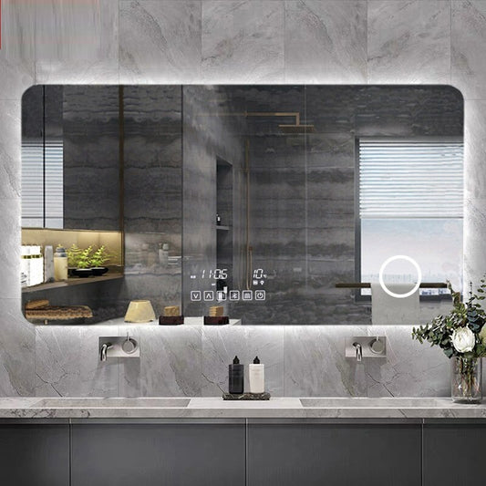 Juno Frameless Wall Mount Touch Screen Multifunctional LED Bathroom Mirror Fixture Designed to fit inside any bathrooms, Juno smart and modern wall mount smart bathroom mirror comes with a 5mm thick environmentally glass, explosion-proof sturdy, and strong. With a CRI>95, the image reflects accurately without color cast and distortion, enabling you to...