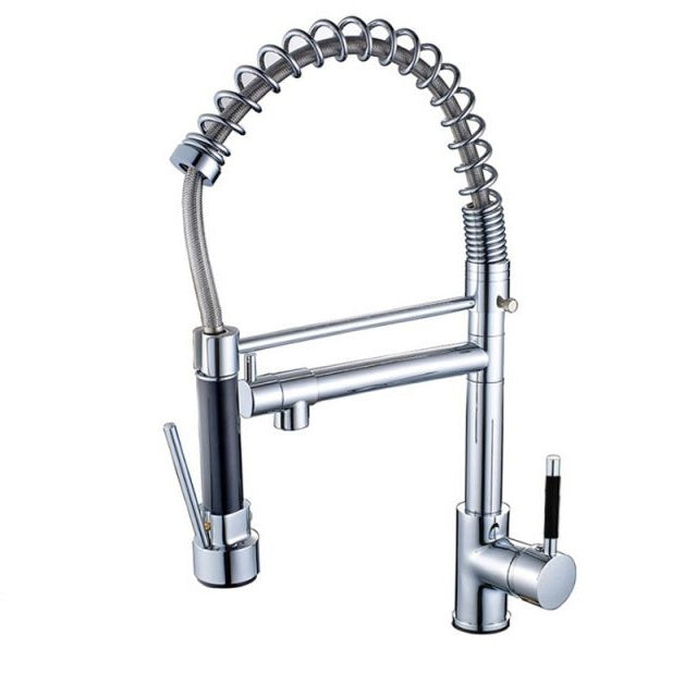 Chrome finishing hot and cold water kitchen sink faucet.