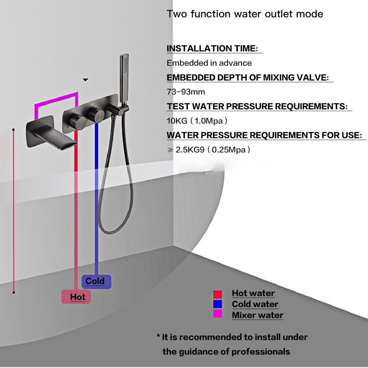 The Juno Black Bathtub Shower Faucet combines modern style and functionality to enhance your bathroom decor. With its double handle double control design, you can easily adjust the water temperature and flow to your preference. The wall-mounted installation not only saves space but also adds a sleek and minimalist look to your bathroom.