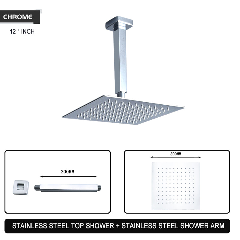 Shower Head Size: 8, 10, 12 inch