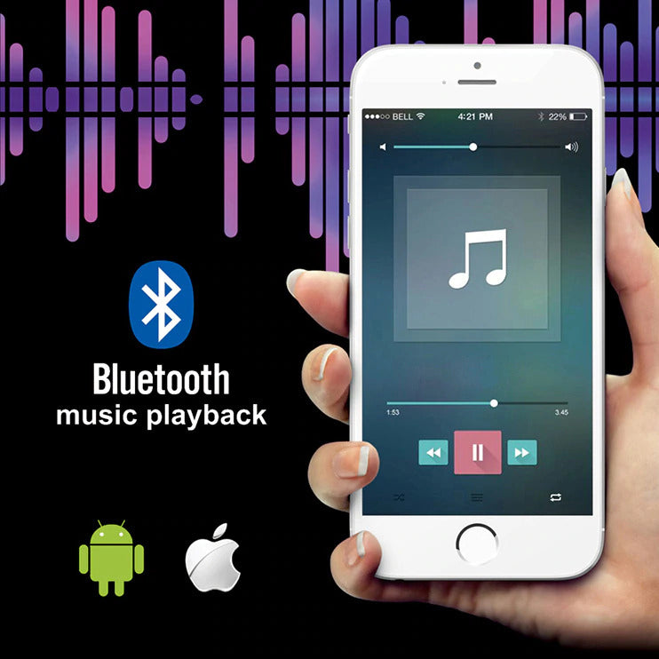 It has LED lights that can change to 64 colors. It also has a built-in speaker. You can connect the speaker to your phone using Bluetooth to play music.