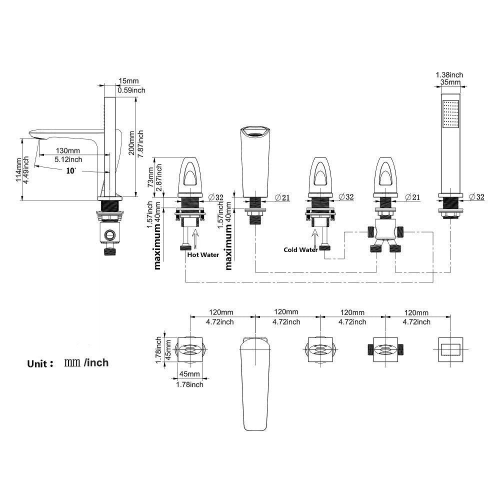 Upgrade your bathroom with the Juno New 3-Handle Bathtub Faucet Deck Mount, a sleek and modern deck-mounted bath tap designed for both style and convenience. This bathtub faucet with shower head offers a luxurious bathing experience with its versatile handheld shower head and rainfall shower system.