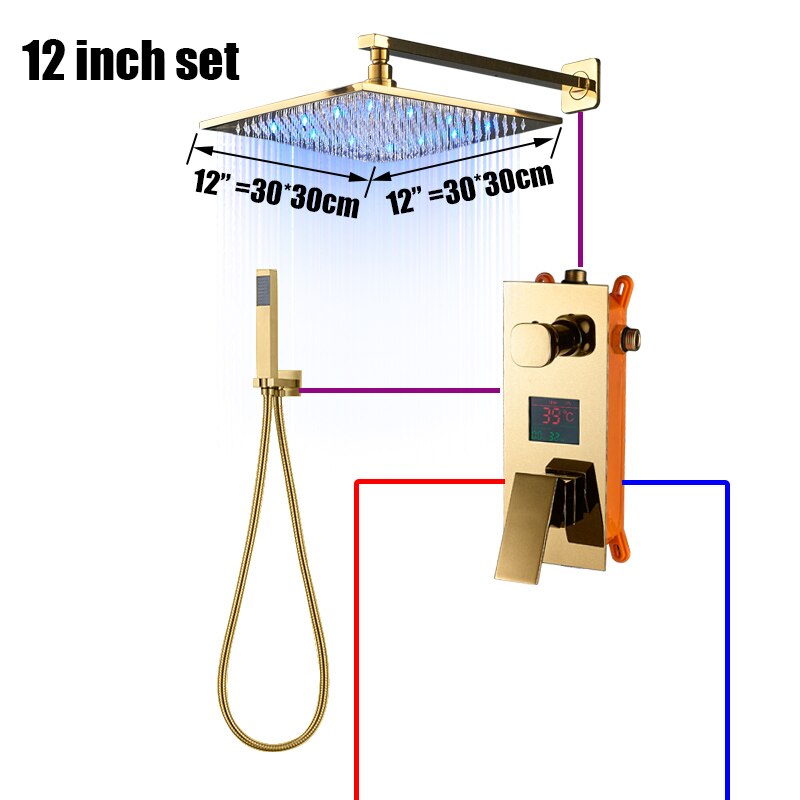 Juno Polished Gold 3 Way LCD Mixer Valve With Digital Display Bath Shower Faucet Description :