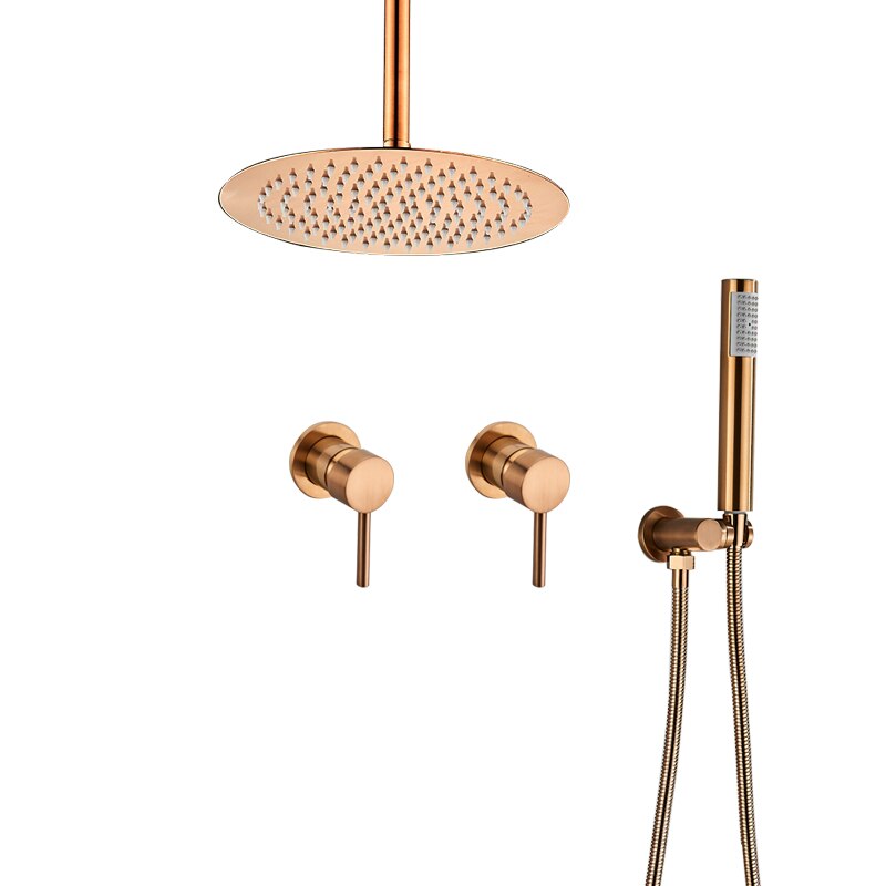 The wall-mounted design of the shower set gives you plenty of room under the shower head, making it perfect for any size bathroom. If you want to mount the shower set in the ceiling, this option is also available. With two handle options (without a tub spout or with one) and features like Ultrathin Rainfall Shower Head, you can create a personalized spa experience in your own home. The 1.5M size hand shower hose provides flexibility so you can easily direct the water where you need it most. Make your shower even better with the Juno Rose Gold 16 Inch Ceiling Mount Wall Mount Rain Shower Head Set.
