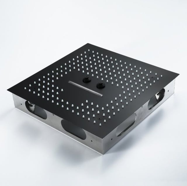 Juno 16" square LED shower comes in its a bathroom ceiling mount shower and It has multiple 3 colors changing feature with remote control. It comes in a brushed nickel finish black and the installation is ceiling mount. It fixed the support type. Water flow has 9-25L/min. It comes with high-quality copper casting & It is easy to install showerhead. Get fresh body massage and feel relax.
