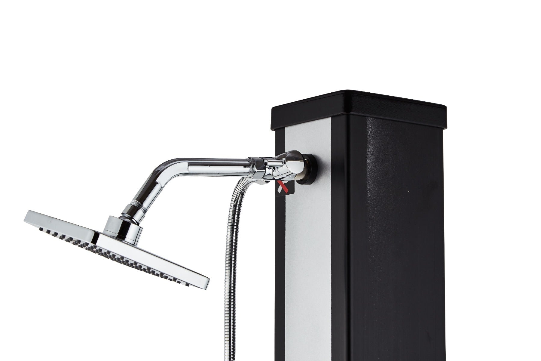 Elevate your outdoor space with the Juno Square Solar Outdoor Shower, designed for convenience and eco-friendly luxury. With a sleek silver finish and a large 35L/40L capacity, it provides ample water for refreshing showers after a swim or a day in the sun. The easy-to-use handle ensures effortless operation, making it the perfect addition to any backyard or poolside.