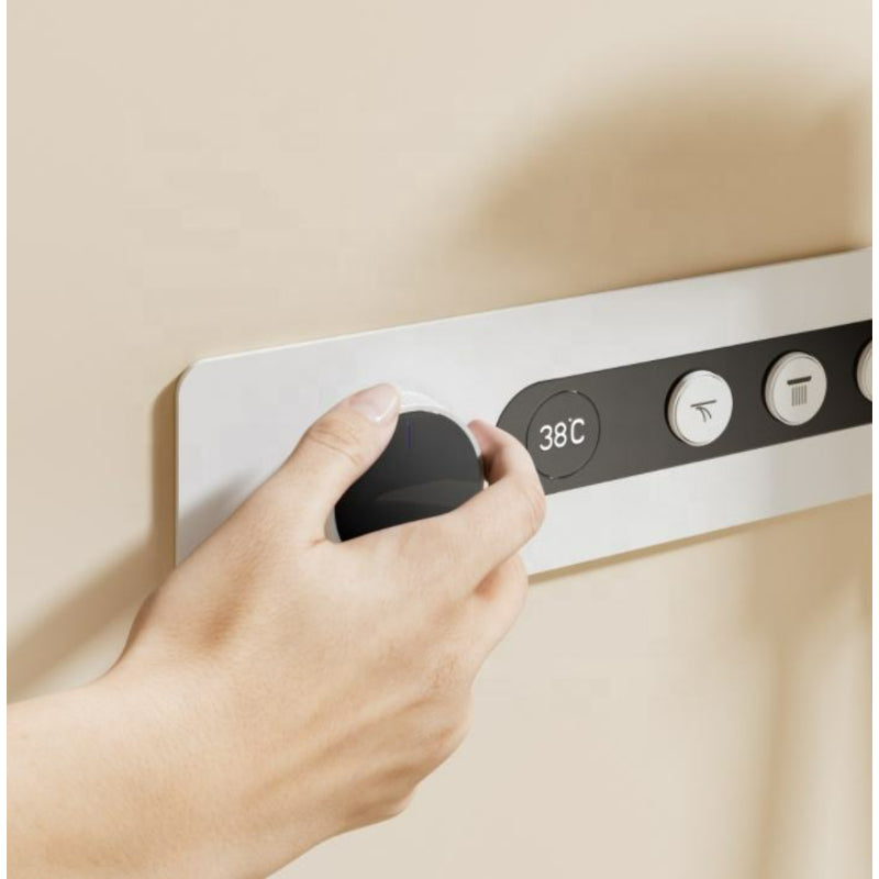 Upgrade your shower experience with the Juno Wall-Mounted White Brass Thermostatic Rainfall Smart Shower Head Set. This sleek, modern design combines elegance and technology, delivering a customizable rainfall experience with precise temperature control. Transform your daily routine into a luxurious escape with this cutting-edge smart shower set.
