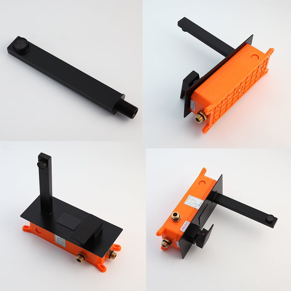 Brushed brass body three hole bathroom basin sink waterfall faucet round dual handle mini wide spread.