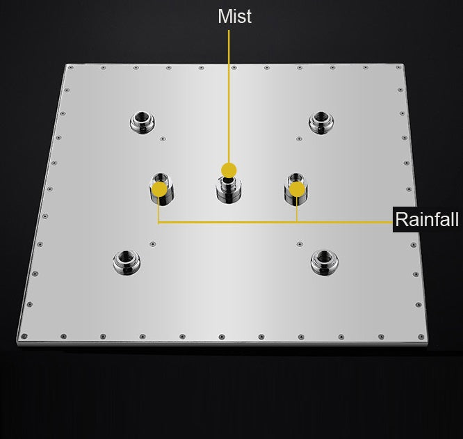 This Juno square LED Shower with spray mist shower head is made of stainless steel; the water pressure balance will soothe your muscles and help you relax. A contemporary Euro design in high quality stainless steel.