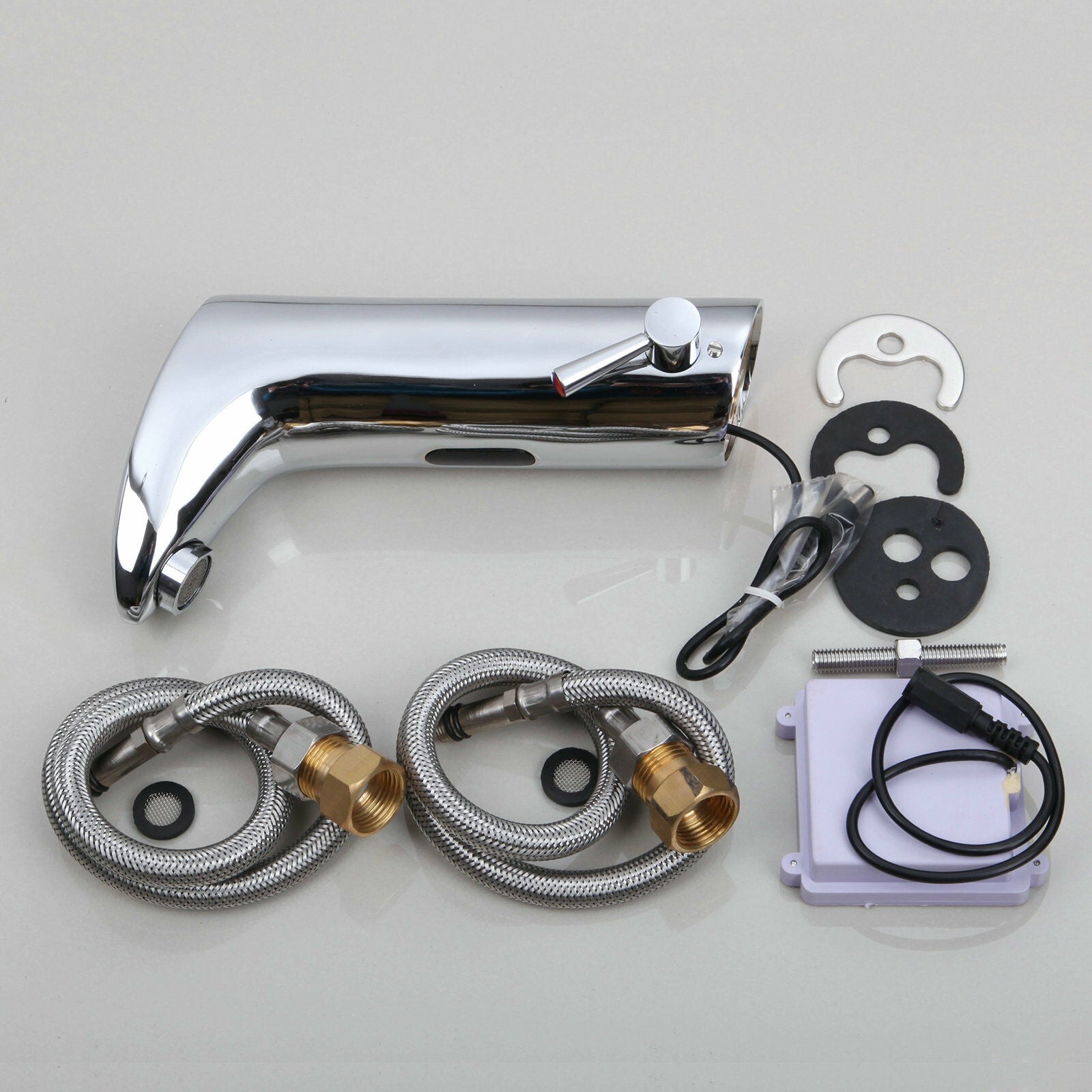 Automatic Faucet with Integral Water, Molino bathroom sensor faucet intelligent: with its micro-computer controlling its action, the faucet will self adjust its best detection zone as per the color and shape of the lavatory. With low power consumption: 4AA alkaline batteries can be used for 5 years. Convenient to maintain: Mixing Valve Built-in strainer prevents sundries from entering the solenoid valve and the strainer is easy to clean Motion detection Touchless sensor faucet operation Commercial and residential use Sensitive Sensor with Infrared AI Smart-Chip Factory set to 30-second Auto Shutoff (can be adjusted). Water Pressure: 0.5 - 7.0 KGS/cm , 10 - 125 psi Solid Brass Construction, Polished Chrome Finish, Easy to Install - Instructions Included Water resistant solenoid enclosure Advanced energy saving design for long lasting battery life Comes complete with Hoses & Accessories Power Supply: AC110V And DC6V (batteries not included) AC/DC power option. ADA Complaint Easily can be installed in new or retrofit applications. Comes with 1 year of manufacturing warranty.