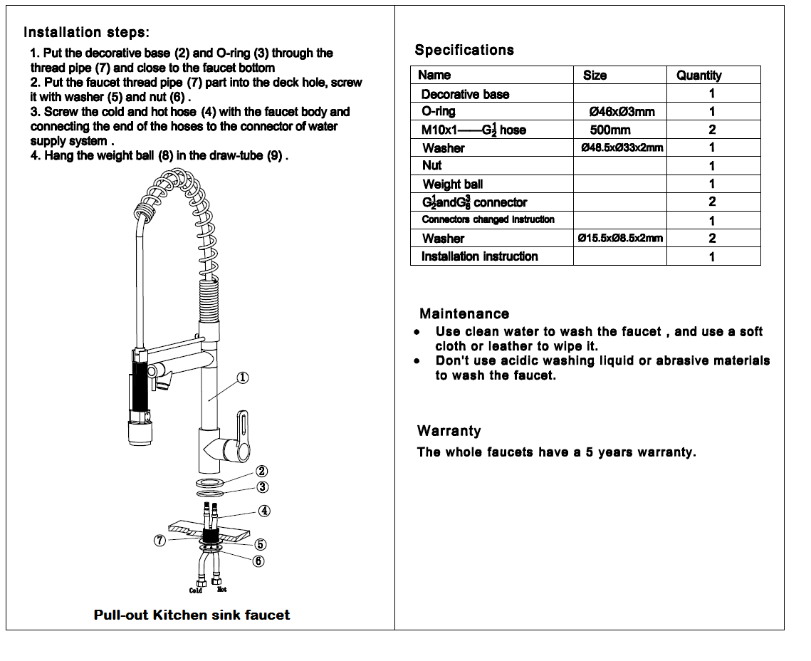 6. Water pressure: 0.2-0.8 Mpa, at least 0.2 Mpa.