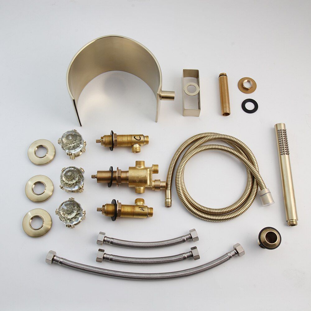 Deck mounted waterfall roman oil rubbed waterfall bathtub faucet with handheld shower head.