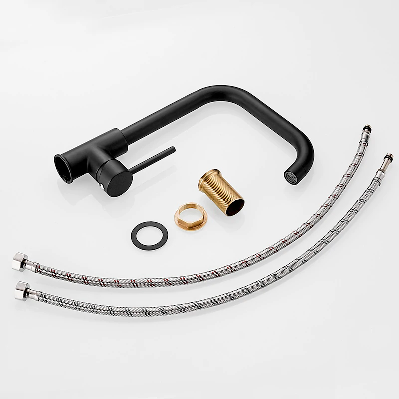 Juno tall black single handle kitchen faucet deck mount installation brass marble design. This can be use in commercial kitchen like hotels, restaurants and home use.